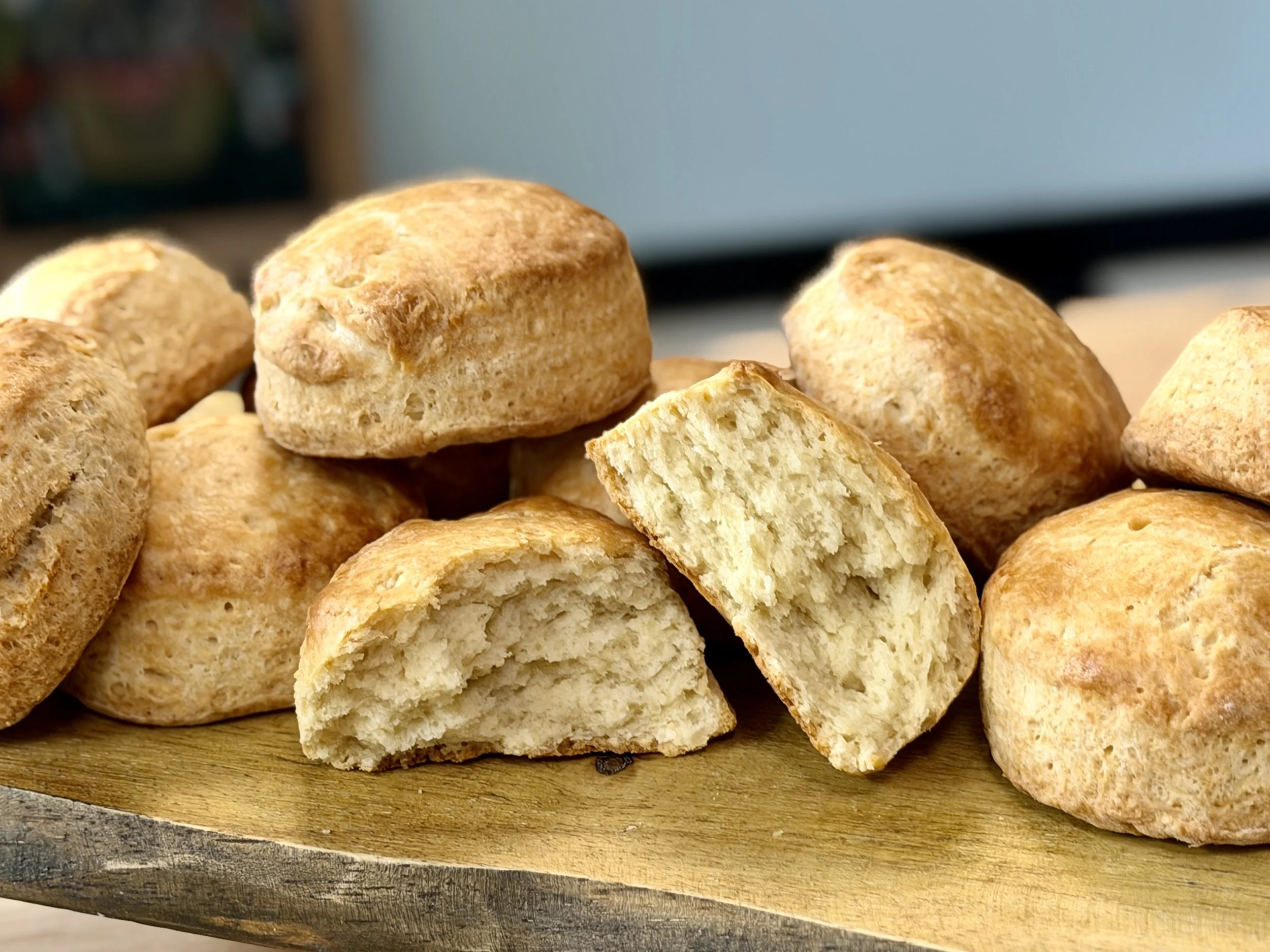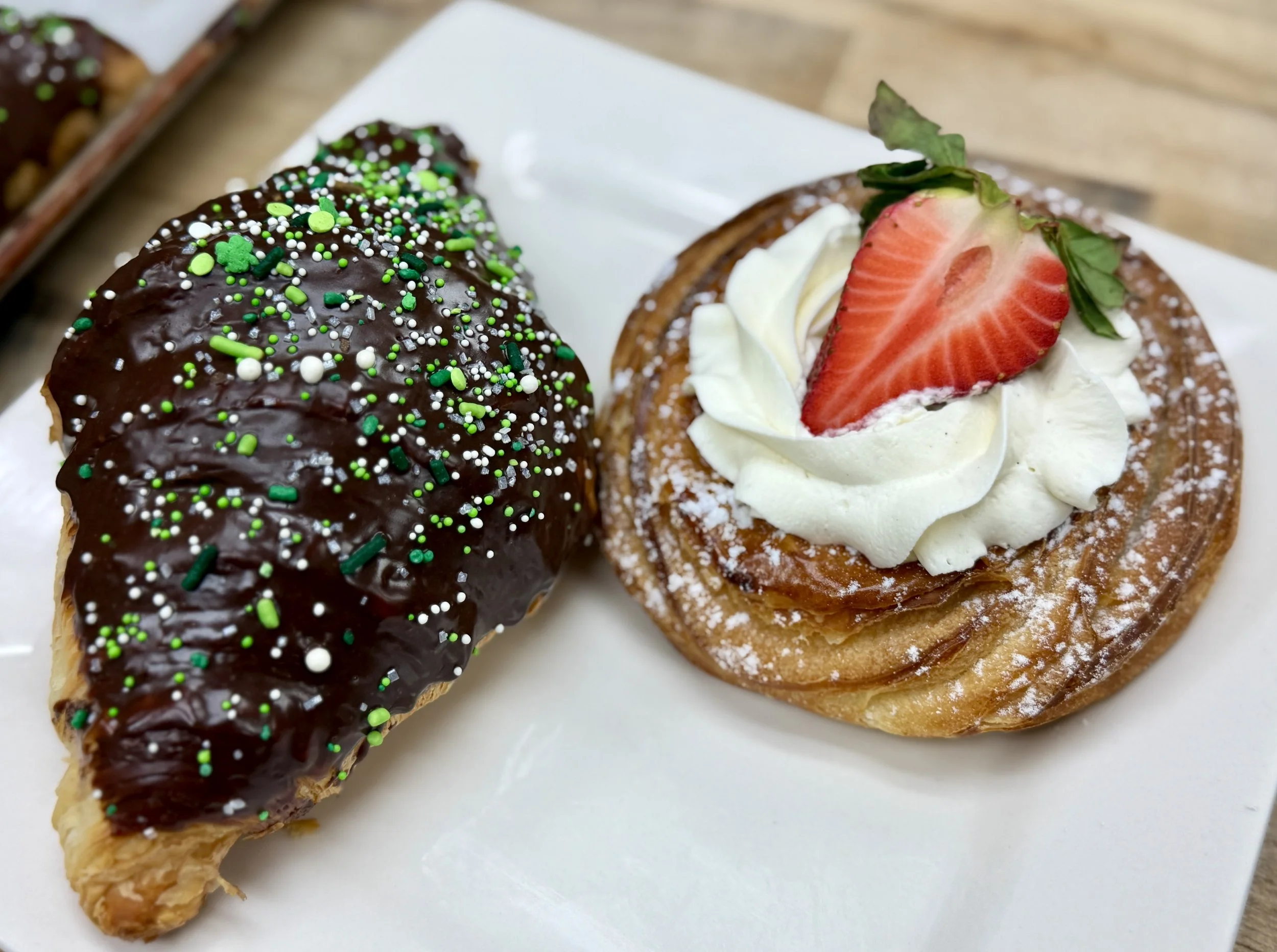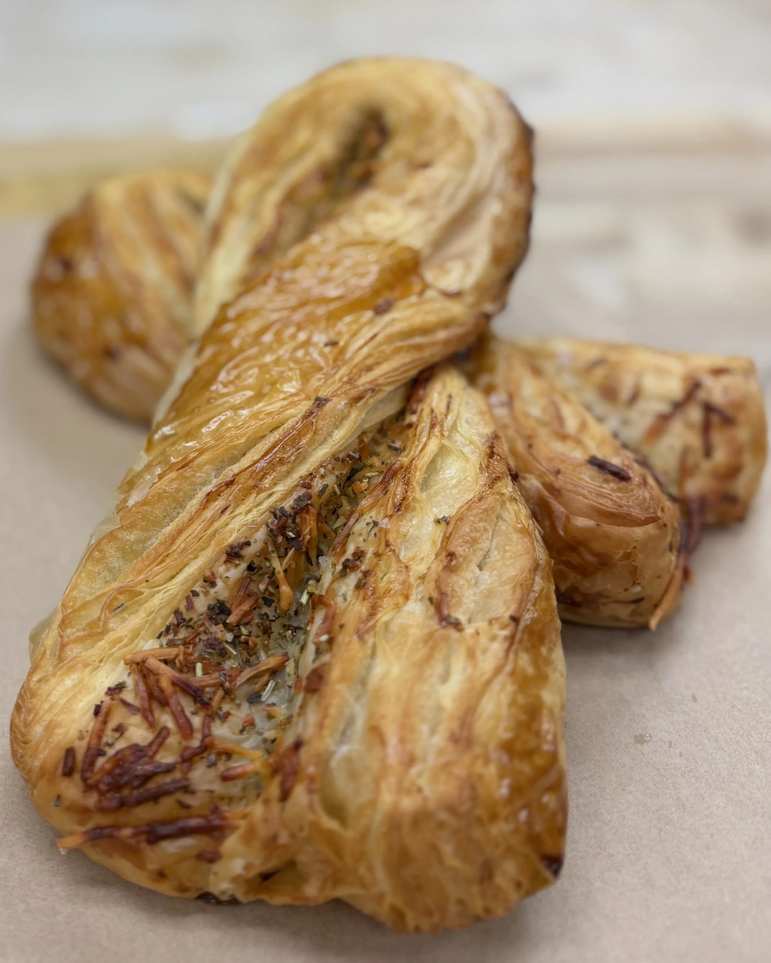 With a focus on fresh ingredients, we work with local partners whenever possible including Agriberry Farm and Bugle Call Coffee. We strive to create new and exciting flavors, while respecting classic techniques and methodology. Our primary focuses are croissants and laminated pastries; it’s our bread and butter, so to speak. Each croissant is part of a three day process, so even when the shop is closed, we are working hard to provide the community with their favorite baked goods! We offer a wide variety of sweet and savory options, such as croissants, scones, cookies, sandwiches, and breads. Our breads are mostly sourdough based and a true labor of love.